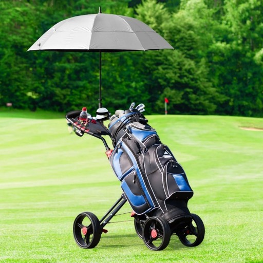Складний візок для гольфу на 4 колесах із регульованою ручкою Наш складаний візок для гольфу дозволяє легко транспортувати навіть у найменшому багажнику автомобіля. Міцна сталева конструкція забезпечує високу вантажопідйомність і довговічність. Ергономічний дизайн полегшує керування та керування. Крім того, він має достатньо місця для зберігання різноманітних аксесуарів. Тримач для парасольки особливо корисний у спекотні або дощові дні, а гнучкі та міцні колеса роблять його придатним для будь-яких типів місцевості.