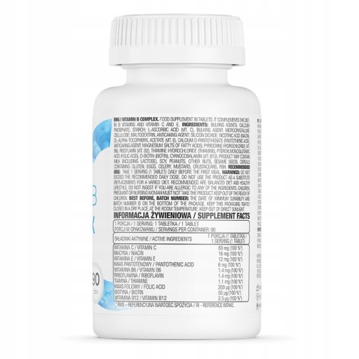 OstroVit Vitamin B Complex – ідеально збалансований комплекс вітамінів групи B, розроблений спеціально в зручній для використання формі. Це ефективна підтримка для вашого організму та забезпечує необхідні поживні речовини. Кожна капсула містить 8 різних вітамінів групи B, включаючи тіамін, рибофлавін, ніацин, пантотенову кислоту, вітамін B6, біотин, фолієву кислоту та вітамін B12.