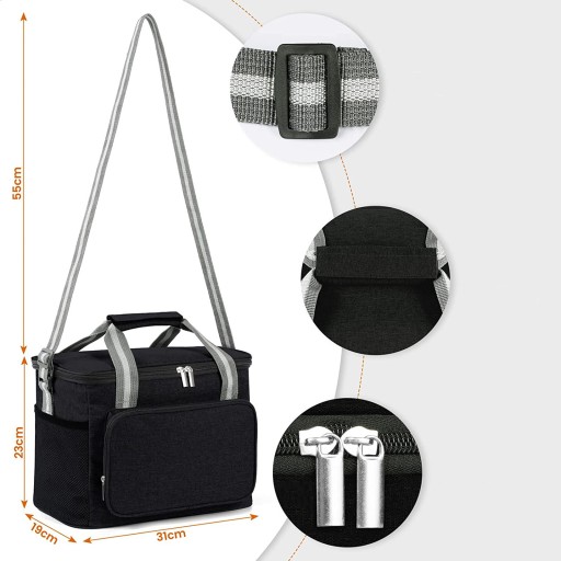 Сумка для пікніка, зовнішній шар з водонепроникної та брудостійкої тканини 600D Oxford, підкладка з плівки PEVA, призначена для контакту з їжею, яку можна протирати тканиною, вбудована піна EPE товщиною 6 мм запобігає рух контейнера для обіду, Розривна прохолодна невелика сумка має посилену верхню ручку та регульований плечовий ремінь для зручного транспортування.