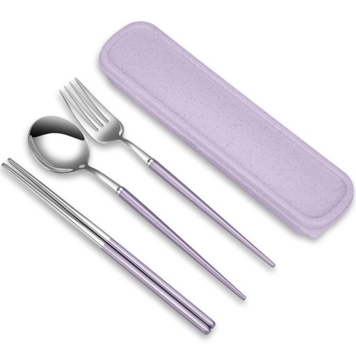 Набір столових приладів із 3 предметів (ложка, виделка та палички) ідеально підходить для подорожей.
