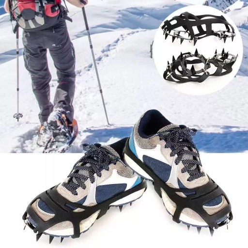 - 18 цвяхів з нержавіючої сталі забезпечують чудове зчеплення та допомагають уникнути падіння на рівній, тонкій, крижаній або засніженій поверхні.