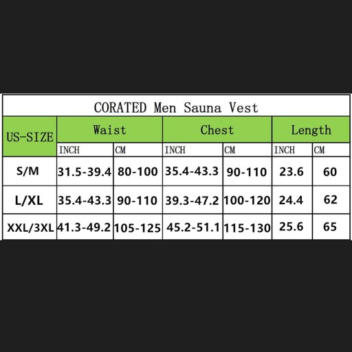 2XL/3XL: Талія: 105-125 см/41,3-49,2 дюйма, груди: 115-130 см/45,2-51,1 дюйма, довжина: 65 см/25,6 дюйма.