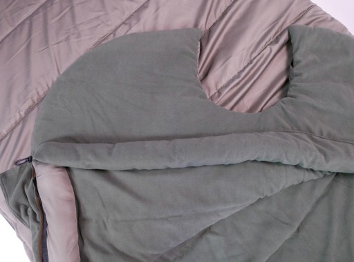 - Підкладка складається з флісу у верхній половині, який відразу зігріває верхню частину тіла, а в нижній половині - слизька тканина, яка дозволяє швидко дістати ноги зі спальника.