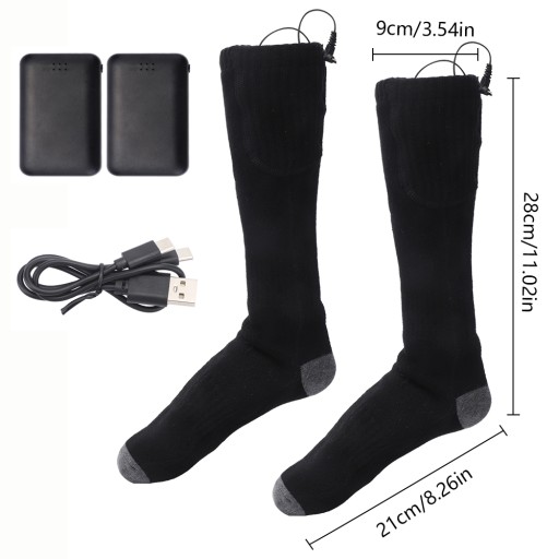 - Наші перезаряджувані шкарпетки з підігрівом оснащені двома літій-полімерними батареями ємністю 4000 мАг, які забезпечують до 6-12 годин тепла.