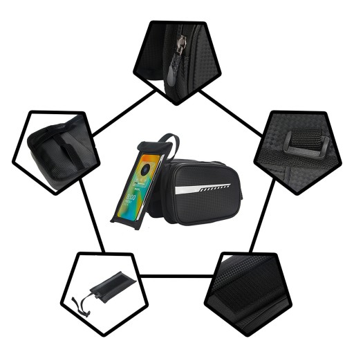 4. Гачок і петля: сумка для велосипеда та сумка для мобільного телефону прикріплені за допомогою гачка та петлі, яку можна розібрати за одну секунду та легко забрати. Сумку для мобільного телефону з сенсорним екраном можна носити і вішати.