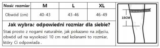 ЗАПЛАТИТЬ ПРИМІТКА: Перегляньте таблицю, щоб вибрати свій розмір. Ми рекомендуємо вам не вибирати розмір за зростом і вагою. За допомогою рулетки виміряйте окружність стегна на 10 см вище колінної чашечки: (це найточніше).