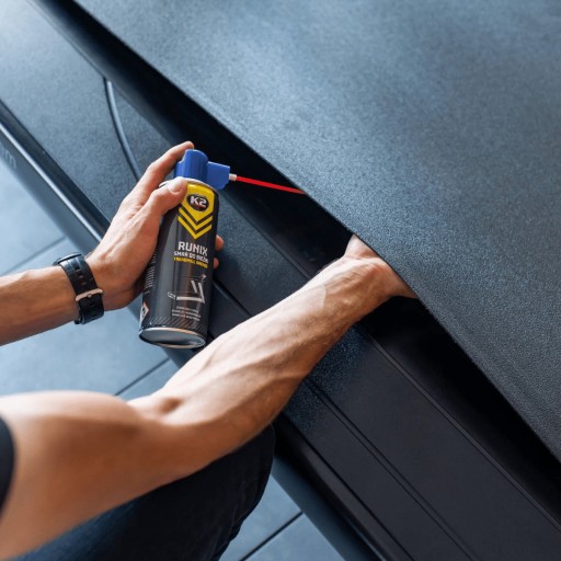 Ідеально працює з елементами з пластику та металу та захищає від корозії. Зменшує явище приклеювання бігового полотна до пластини бігової доріжки. Усуває скрип, безбарвний, не залишає плям, не має запаху та водонепроникний. Його регулярне використання дозволяє знизити тертя і, як наслідок, знизити енергоспоживання пристрою. Крім того, силіконова мастило-спрей запобігає деформації та розтріскуванню елементів із пластику, гуми та металу, що подовжує термін служби пристрою.
