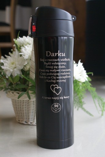 Елегантна металева термокружка з вашим гравіюванням в дерев'яній коробці з гравіюванням.