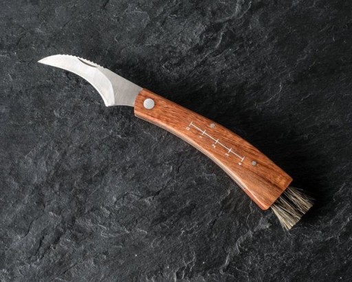 Обов’язковий атрибут кожного справжнього грибника. Вигнутий ніж з гострим лезом з високоякісної нержавіючої сталі зі щіточкою для чищення «знахідок». На дерев'яній ручці є мірна стрічка, адже давно відомо, що розмір має значення ;) і іноді потрібно похизуватися екземпляром. Завдяки чохлу в комплекті, ви можете повісити його на пояс.