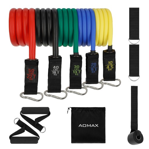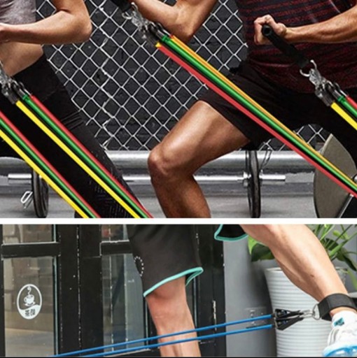 Наш набір включає 5 розширювачів + аксесуари - дверний гачок, 2 гумові ручки, 2 міцних тримача для ніг - все упаковано в міцну сумку - високоякісна гума, що характеризується високою стійкістю до розривів і пошкоджень навіть під час інтенсивних тренувань у складних умовах. .
