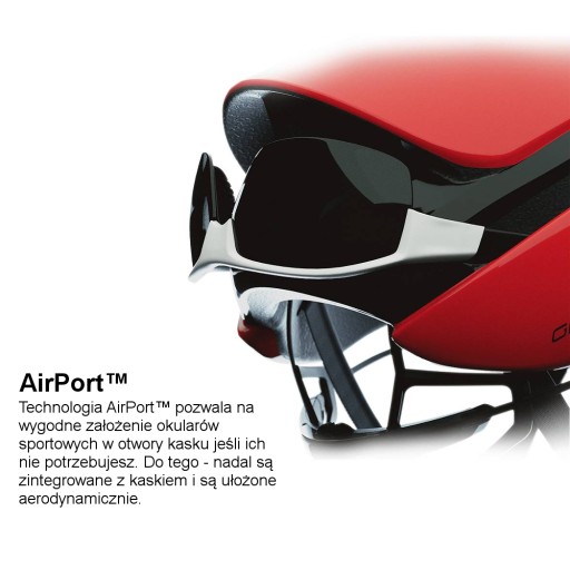 - AirPort: вбудований в шолом, аеродинамічний отвір в шоломі з тримачем для окулярів. Ви можете поставити їх туди, якщо вони вам не потрібні