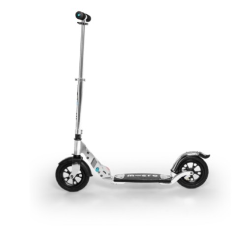 Молодіжний самокат Micro Flex Air легкий. Додатково має механізм складання, завдяки якому його можна скласти однією кнопкою. Стиснутий таким чином самокат можна легко переносити або помістити в шафу чи під стіл. Транспортний засіб також має подвійний механізм блокування, який запобігає складанню самоката під час їзди. Надувні повітрям колеса легко долають нерівну бруківку або гладку гравійну поверхню. Micro Flex Air ідеально підходить для подорожей на далекі відстані або як альтернативний засіб транспортування на роботу чи в університет.