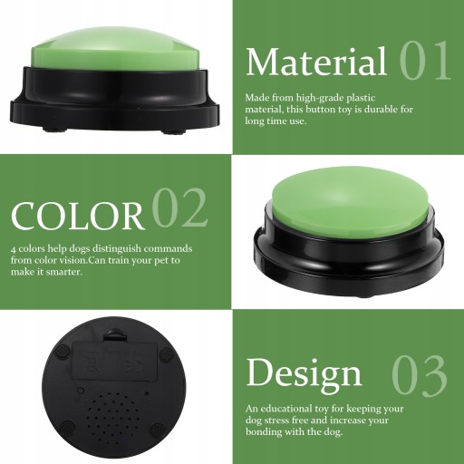 Ви шукаєте кнопку для запису собак? Подивіться на наш продукт! У цій іграшці з ґудзиками плоскі та широкі ґудзики дозволяють вашому вихованцеві легко лапати. Навчіть собаку пам’ятати, що для того, щоб її зупинити, потрібна «нецивілізована» поведінка, наприклад, дряпати двері або гавкати, щоб наказати вам випустити її.