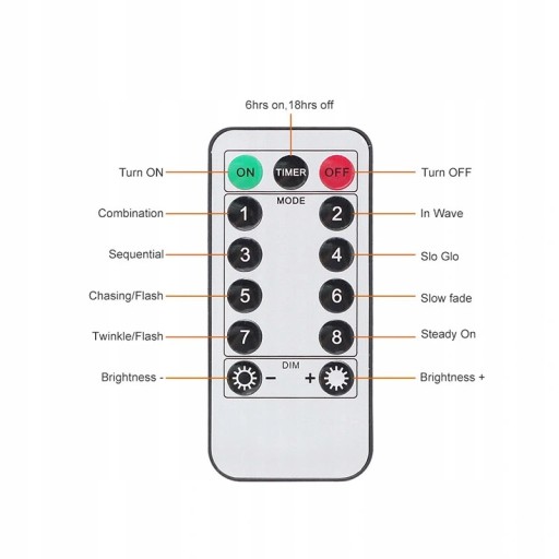 За допомогою пульта дистанційного керування ви можете вибрати улюблені режими освітлення в радіусі 10 метрів і налаштувати яскравість під свої потреби (10 рівнів яскравості). Світло вмикається на 6 годин і вимикається на 18 годин автоматично при натисканні кнопки «ТАЙМЕР».