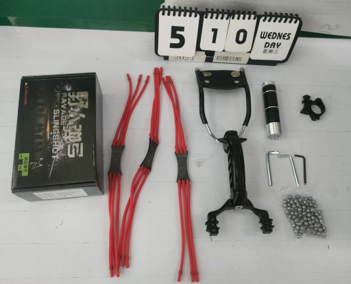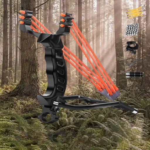 - Регульована підставка для зап'ястя і рогатка золотої пропорції, складна рогатка, проста у використанні і зручна для транспортування, з тримачем для лазерного ліхтарика дозволяє точно полювати навіть вночі;