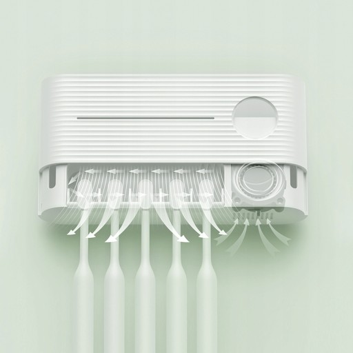 Вбудований турбовитяжний вентилятор швидко видуває краплі води на ворсинках зубної щітки. Ретельно висушіть краплі води на зубній щітці. Тримайте його в чистоті та обмежуйте ріст бактерій.