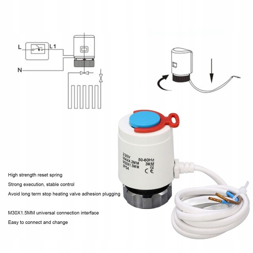 Заміна радіаторного клапана Тепла підлога Водяний колектор Термостатичний електропривід M30x1.5mm 230VAC