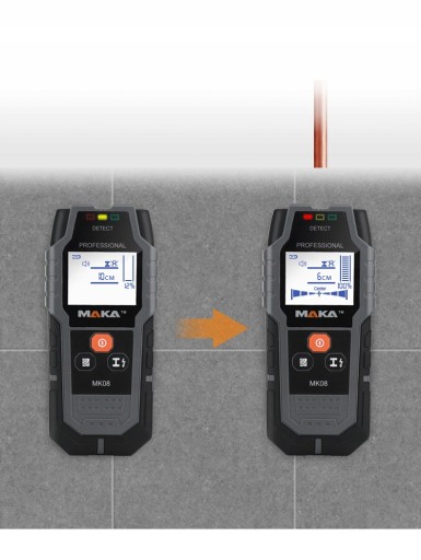 Кабеледетектор MAKA MK08 дозволяє виявити елементи електроустановок, а також метали або дерево, які приховані під штукатуркою. Використовуючи пристрій, ви забезпечите собі безпеку і уникнете пошкодження важливих елементів конструкції.
