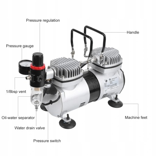 1. Цей двоциліндровий поршневий насос для аерографа є потужним і забезпечує стабільну роботу