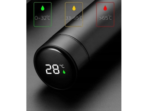 Якісна термокружка з нержавіючої сталі та якісного пластику. Оснащений РК-дисплеєм, що відображає поточну температуру напою (на кришці). Він дуже надійно тримає вашу руку завдяки своєму тонкому та ергономічному дизайну. Також має кришку, яка управляється зручною кнопкою.