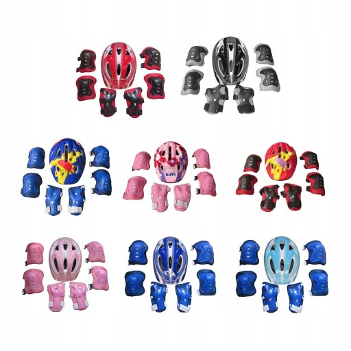 Захисний шолом із 7 предметів, підлокітник, коліно та зап’ястя яскраво-рожевого, червоного та синього кольорів