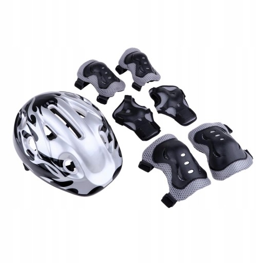Набір спортивного захисного спорядження із 7 предметів - налокітники, наколінники, наручники та шолом - забезпечує повний захист дітей