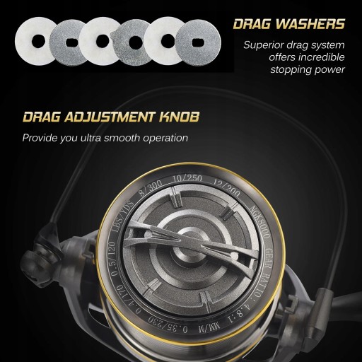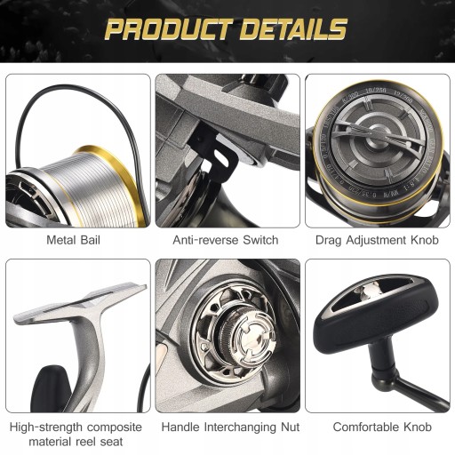 ☘Специфікація: ☘Модель: NGK8000/9000/10000/12000/14000 (опціонально) ☘Матеріал: Метал #43; Нейлон ☘ Модель ☘ Кульковий підшипник ☘ Передавальне число ☘ Ємність кабелю ☘ (мм/м) ☘ Вага ☘ NGK8000 ☘ 17 #43;1BB ☘ 4,8:1 ☘ 0,35/230 0,4/170 0,5/120 ☘ 576 г ☘ NGK9007 ☘3 ; 1BB ☘ 4,8: 1 ☘ 0,35/310 0,4/240 0,5/270 ☘ 579G ☘ NGK10000 ☘ 17 #43; 1BB ☘ 4.8: 1 ☘ 0.35/550 0.4/420 0.5/270 ☘ 574G ☘ NGK12000 ☘ 17 #43; 1BB ☘ 4,8:1 ☘ 0,35/750 0,4/600 0,5/390 ☘ 581 г ☘ NGK14000 ☘ 17 #43;1BB ☘ 4,8:1 ☘ 0,35/950 0,4/790 0,5/590 ☘ 57 9г ☘Пакет спінінгів*: Намотування 1