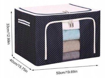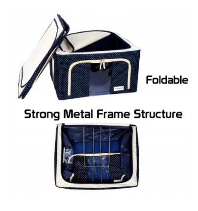 Виготовлений з приємної на вигляд тканини, контейнер стане елегантним рішенням для вашого гардеробу. Сталевий каркас підтримує тканину і зберігає форму контейнера. Прозорі вікна дозволяють бачити все всередині. Подвійні блискавки з боків і зверху забезпечують легке відкривання і закривання. Дві ручки для зручного перенесення