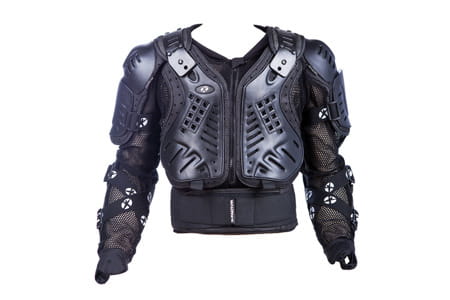 Широка броня з додатковим захистом ключиць. Підвищена щільність композиту, з якого виготовлені захисні панелі. Опорна частина виконана з швидковисихаючої сітки. Додаткове регулювання обхвату грудей і силовий ремінь дозволять броні ідеально сидіти на будь-якій фігурі.