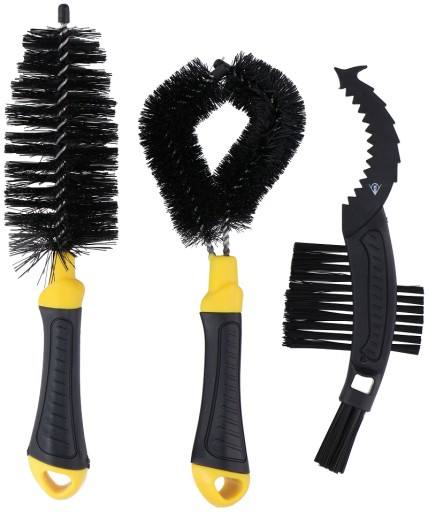Набір велосипедних щіток Dunlop складається з трьох елементів для чищення різних частин велосипеда. Виготовлений із міцного пластику, який легко миється. Товсті неслизькі ручки полегшують утримання під час чищення.