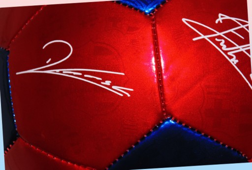 - м'яч клубних кольорів з підписами гравців (Левандовскі та інших гравців)