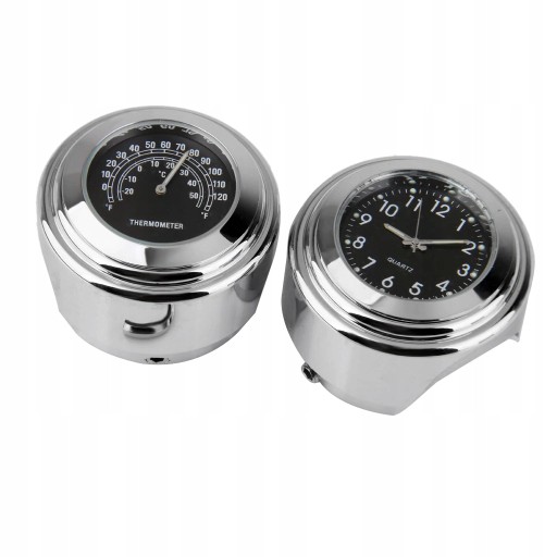 Елегантний хромований годинник і термометр практично для будь-якого керма. Поставляється з шестигранним ключем для встановлення та гумовим ременем на кермі.