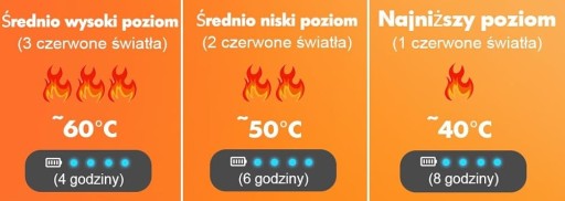У комплект входять акумулятори на 5000 мАг. З 3-ступінчастим регулюванням тепла 1,2,3 (низький, середній, високий рівень нагріву).