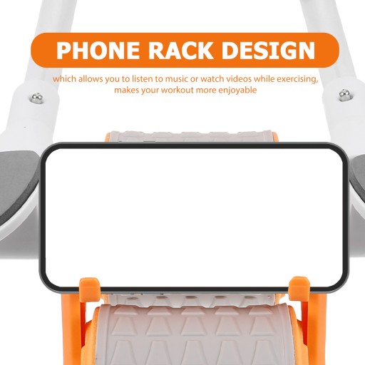 - Тренажер поставляється з підставкою для телефону, яка дозволяє слухати музику або дивитися відео під час тренування, що робить тренування приємнішим і допомагає залишатися мотивованим.