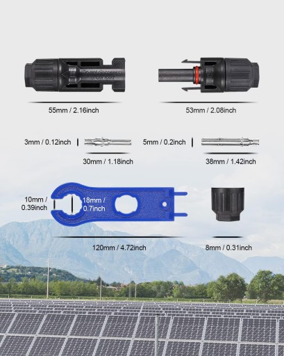 Цей комплект створено для використання з сонячними кабелями та призначений для підключення фотоелектричних панелей. Він сумісний з фотоелектричними кабелями перетином 2,5 мм, 4 мм і 6 мм.