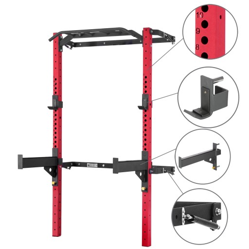 Складна тренувальна клітка KLT22 від HMS розроблена таким чином, щоб відповідати сучасним тенденціям ринку та виправдовувати очікування найвибагливіших клієнтів. Клітка в цьому варіанті продається з додатковим обладнанням. Окрім штанги для підтягувань, гачків для штанги та опор для безпеки, ви також знайдете складану плоску лаву, штангу для занурення, настінну стійку для ваг і тримач для штанги. Цей набір розширить сферу ваших тренувань і надасть нові можливості для зберігання обладнання.