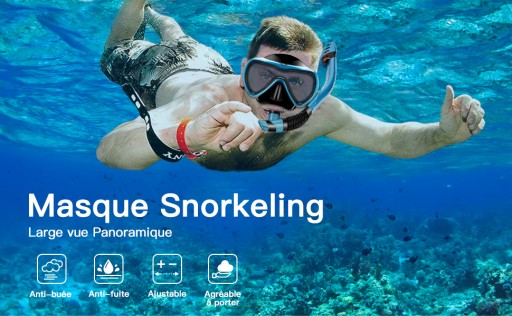 【Зручне носіння】Набір легкий і виготовлений із якісного загартованого скла, міцного, міцного та безпечного. Силіконовий ущільнювач навколо маски м'який, зручний, виготовлений із 100% харчового силікону, не має запаху та нетоксичний, безпечний для дорослих. Гумові беруші запобігають потраплянню води у вуха під час снорклінгу.