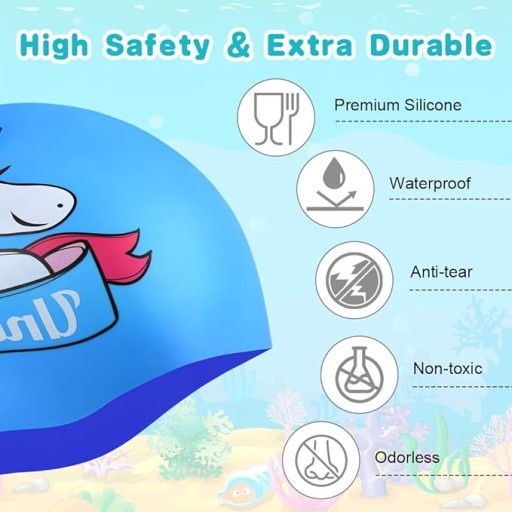 - Високоякісна дитяча шапочка для плавання виготовлена з екологічно чистого силікону без запаху, на 100% нетоксичного і не містить формальдегіду; Надм'яка силіконова прокладка, подвійна конструкція ущільнення, водонепроникна та герметична, зручна в носінні.