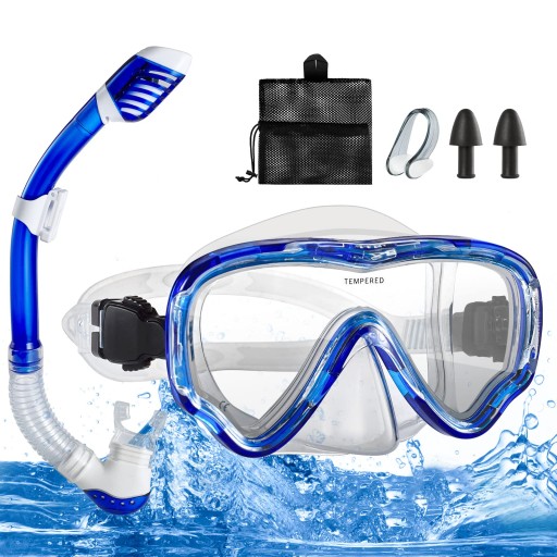 【Зручне носіння】Набір легкий і виготовлений із якісного загартованого скла, міцного, міцного та безпечного. Силіконовий ущільнювач навколо маски м'який, зручний, виготовлений із 100% харчового силікону, не має запаху та нетоксичний, безпечний для дорослих. Гумові беруші запобігають потраплянню води у вуха під час снорклінгу.
