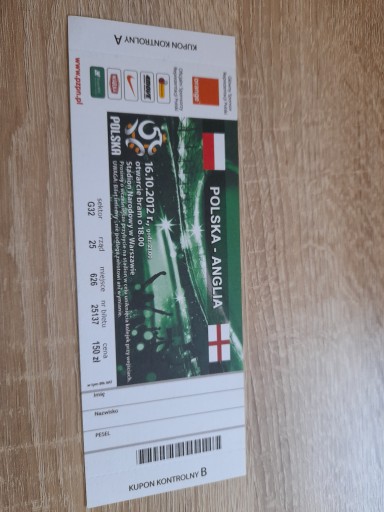 Колекційний квиток Польща - Англія 2012р