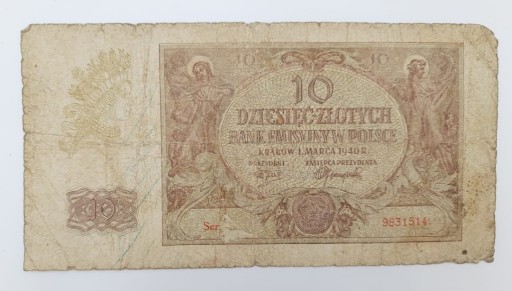 Стара колекційна банкнота Польща 10 злотих 1940 р