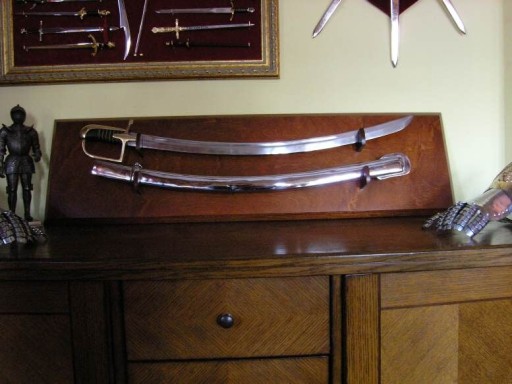 Представлена модель є точною копією зразка офіцерської шаблі. 1921. Цей тип шабель вироблявся на заводах у Варшаві або Золінгені, Німеччина.