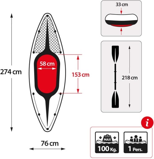 Надувний каяк Challenger K1 274 x 76 x 33 см INTEX 68305