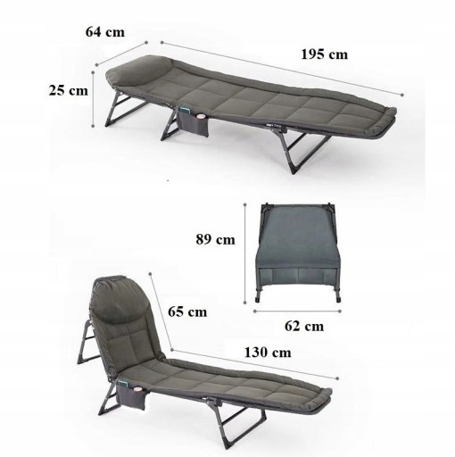 - Розміри (в розкладеному вигляді): довжина 195 см, ширина 64 см, висота 25 см,