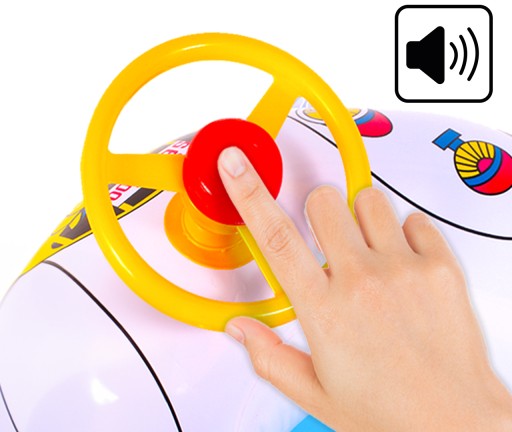PONTOO - дитяче плавальне кільце, що імітує моторний човен з кермом і гудком, що сигналить. Виготовлений з міцного матеріалу.