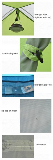 Аксесуари: 8 кілочків для намету, 4 мотузки
