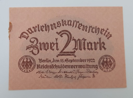 Стара колекційна банкнота Німеччина 2 марки 1922 року
