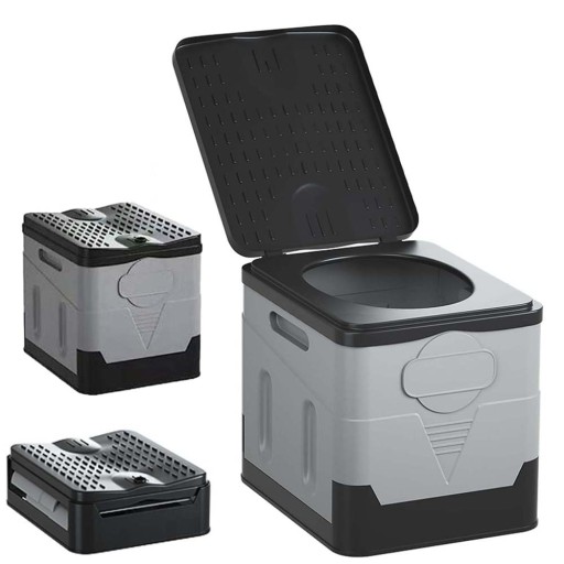 - Складаний унітаз повністю функціональний і має кришку, яка дозволяє перемикатися між використанням, таким як кемпінговий туалет, табурет, кошик для речей або відро для сміття.