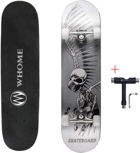 - Деталі - стандартний скейтборд 79 х 20 см, колісна база 45 см, максимальне навантаження: 99 кг. 8-шарова увігнута дека Hard Rock з альпійського клена з високоякісною стрічкою. Професійна вантажівка з алюмінієвого сплаву A356 діаметром 12,7 см із валом із вуглецевої сталі. Підшипники WHOME з високоточної сталі ABEC-9. Оновлені поліуретанові колеса не є колесами для круїзу, а просто стандартними колесами для скейтборду. Антикорозійне обладнання.