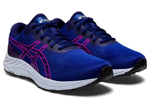 Asics Gel Excite 9 — модель взуття, рекомендована для бігунів-початківців. Якщо ви час від часу бігаєте, це чудовий варіант для вас. Взуття також стане в нагоді для інших видів діяльності, наприклад, для скандинавської ходьби, походів або навіть для повсякденних прогулянок. Сині туфлі з рожевими вставками.